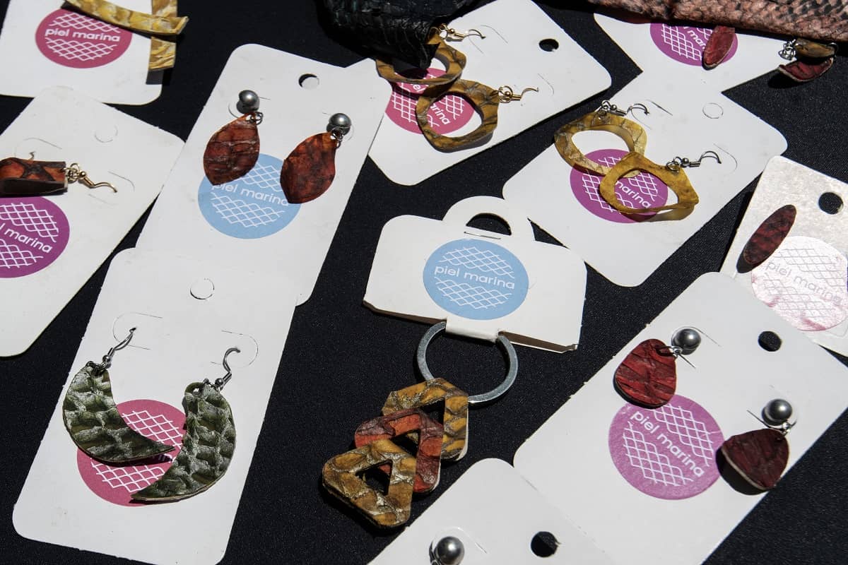 Antiguamente, las pieles eran arrojadas al mar, pero ahora son curtidas y teñidas para hacer un cuero que sirve para elaborar "bisuterías, aretes, collares, pulseras", explica Sosa a la AFP.