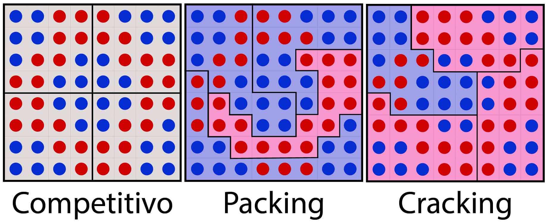 El Gerrymandering intenta crear distritos más conservadores o liberales y se ejecuta de dos maneras, el “cracking” (resquebrajamiento) y el “packing” (empaquetado).