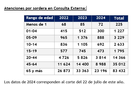 En los primeros siete meses de este año, la Caja Costarricense de Seguro Social (CCSS) atendió a 38 423 personas por pérdida de audición. En el 2023, la cifra total fue de 57 412 pacientes.