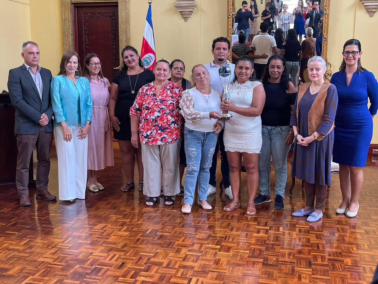 La Cancillería costarricense y la Embajada de Costa Rica en Francia hicieron las gestiones pertinentes para que el trofeo de reconocimiento llegara a manos de las molusqueras costarricenses a través de este homenaje en el salón Dorado de la Casa Amarilla, sede de las relaciones exteriores.