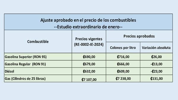 La Autoridad Reguladora de los Servicios Públicos (ARESEP) anunció la fijación de los nuevos precios para los combustibles. El ajuste representa un incremento para el precio de la gasolina súper y el gas LP, y una disminución en el diésel y la gasolina regular.