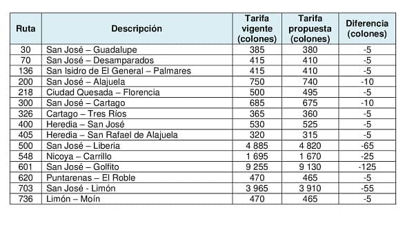 Una buena noticia para los usuarios de autobús del país, ya que la Autoridad Reguladora de los Servicios Públicos (ARESEP) propone una rebaja de 1,33% en las tarifas de los pasajes.